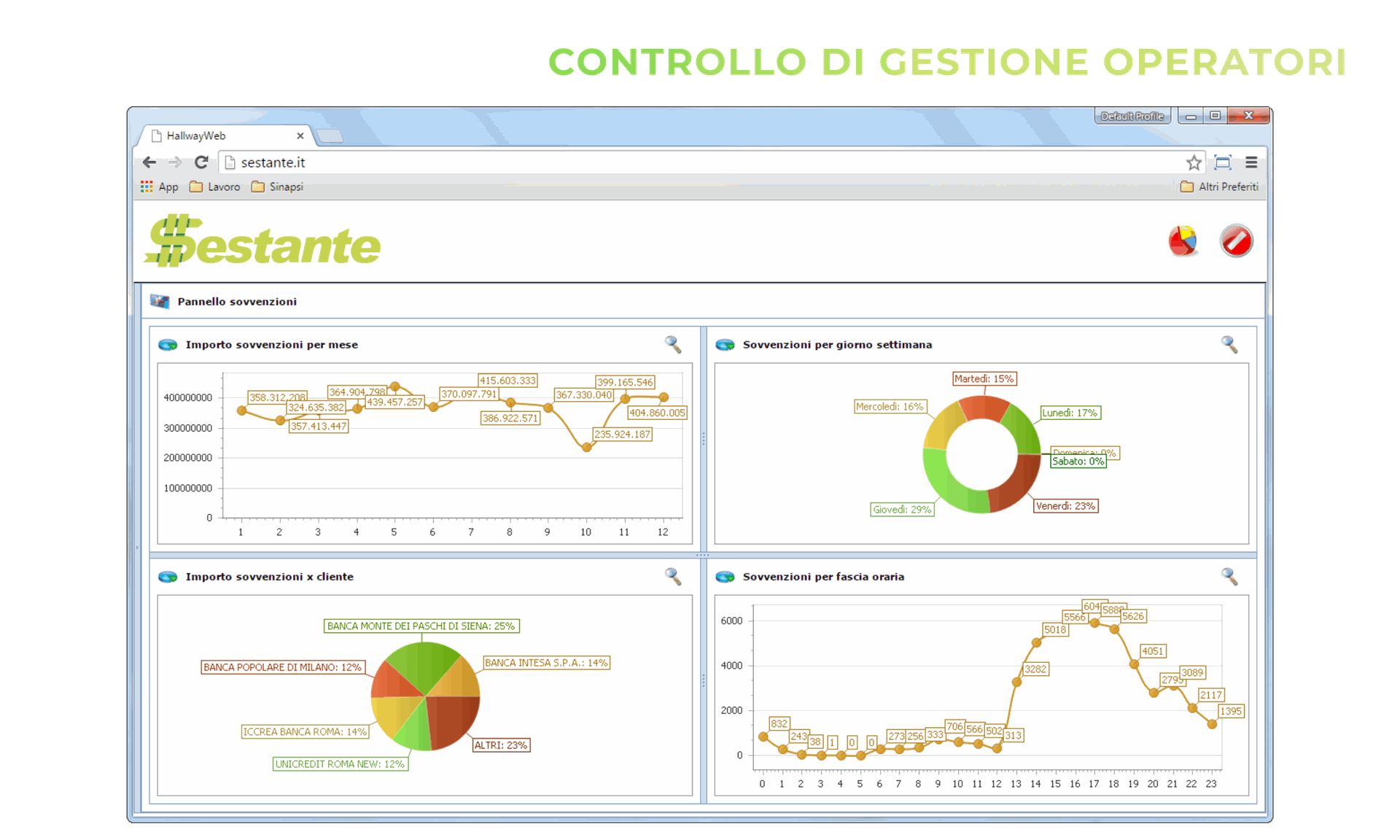 Analizzare l'efficienza dei processi è un percorso lungo e articolato, che spesso richiede una revisione amplia anche dei sistemi operativi. La piattaforma Sestante si basa su cubi di analisi che consolidano statistiche relative ai tempi di lavorazione, conformità e i contratti. Da qui ne derivano interessanti indicatori rivolti ai responsabili di conta per ottimizzare il lavoro interno, indicatori di marginalità che esprimono alla direzione aziendale l'effettiva resa dei contratti stipulati dal comparto commerciale.